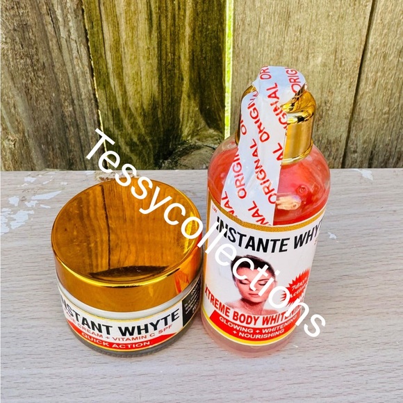 Enhance your glow with Instante Whyte. Includes body lotion and cream. Perfect for radiant skin.